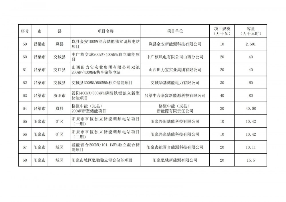 关于山西省2025年新型储能项目库拟调整情况的公示