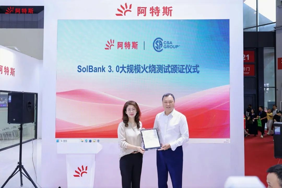 阿特斯SolBank 3.0储能系统通过大规模火烧测试颁证仪式