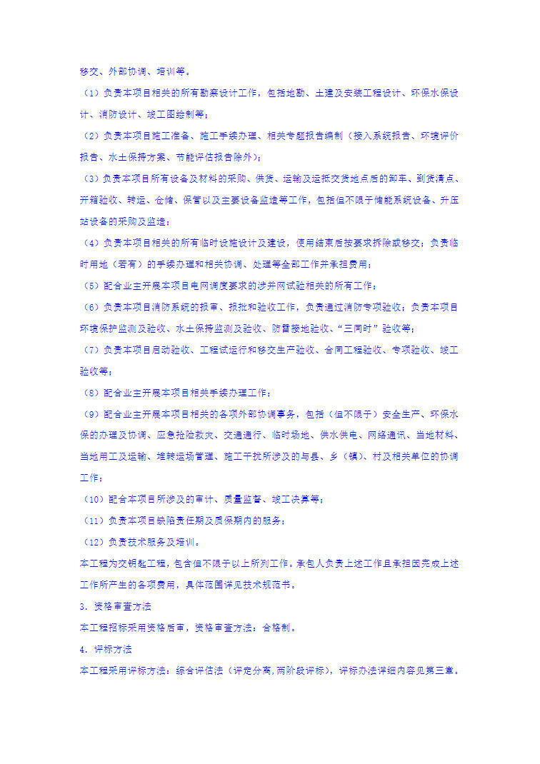 本工程共分为1个标段,主要工作内容(包括但不限于)为200MW/800Mwh独立储能系统及场区、35kV集电线路、330kV升压站、外送线路、生产生活区、进站道路等内容的勘察设计、设备和材料采购、施工、安装、系统调试、涉并网试验、消防验收、启动验收、并网、移交、外部协调、培训等。