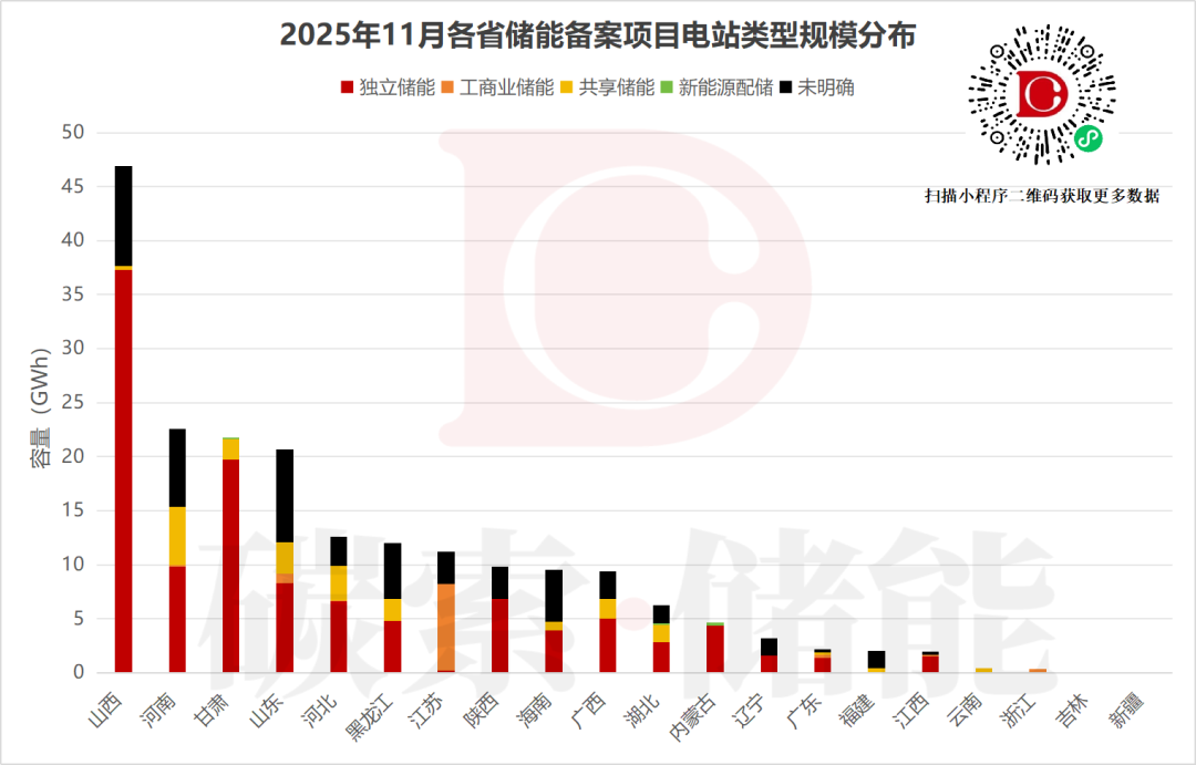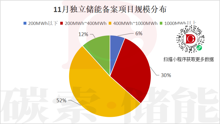11月,全国新增独立储能备案114.89GWh,占新增备案容量的一半以上。