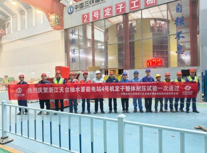 日前,浙江天台抽水蓄能电站4号机定子圆满完成整体耐压试验,各项试验数据均达到优良标准,标志着4号机组正式迈入机电安装总装阶段,为电站2026年4号机组顺利投产筑牢了坚实基础。
