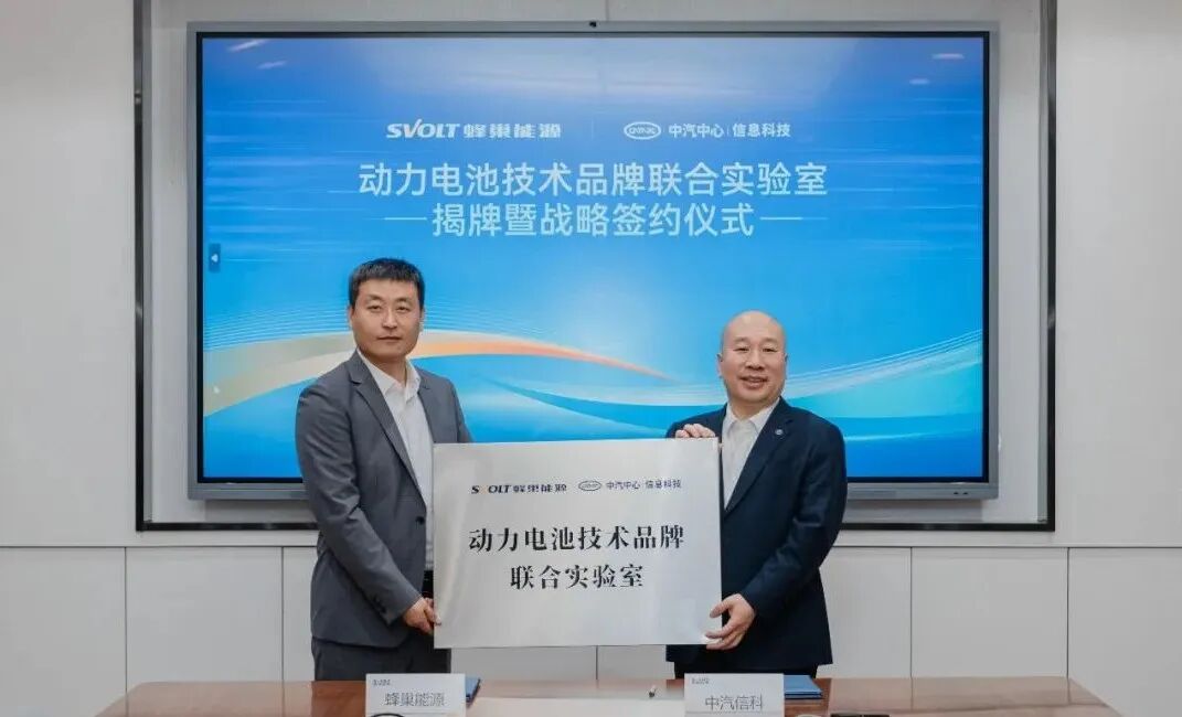 2026年1月5日,蜂巢能源科技股份有限公司与中汽信息科技(天津)有限公司在无锡签署战略合作协议,共同为“技术品牌联合实验室”揭牌。蜂巢能源高级副总裁兼技术中心主任张放南与中汽中心首席专家、中汽信科党委委员、总工程师王军雷出席并见证仪式。