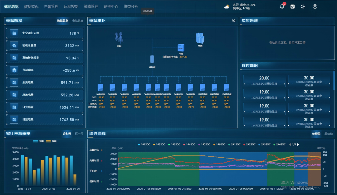 项目深度耦合厂区光伏系统,构建“光储协同”体系。白天光伏发电优先满足园区需求,余电存入储能系统;夜间或用电高峰时,储能设备放电补位,形成“自发自用、余电交易”的闭环。据测算,该模式每年可为园区节省电费超百万元,同时减少碳排放约800吨。更值得一提的是,储能系统接入弘正智慧管控云平台,通过AI算法精准预测负荷与电价,优化电价套利收益,并探索参与虚拟电厂、辅助服务等场景,进一步释放储能的多维价值。