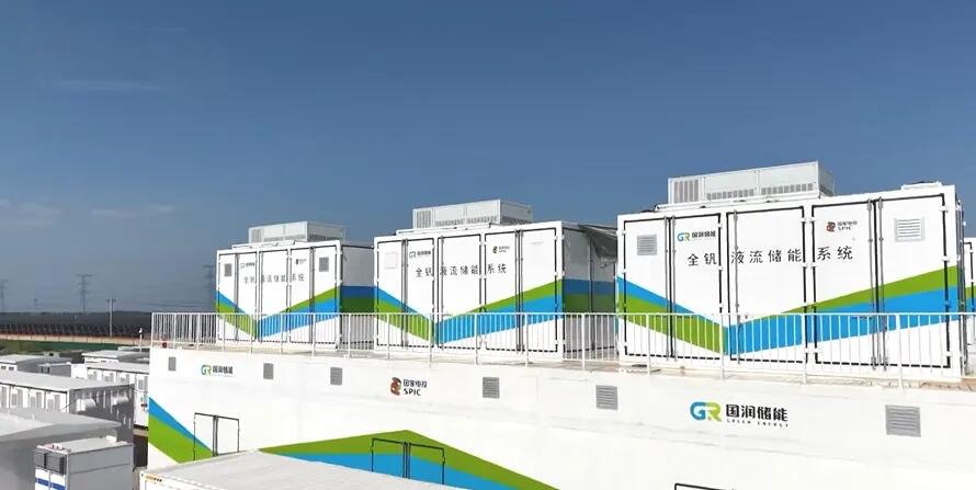 项目最大创新在于采用了全钒液流电池+磷酸铁锂电池的混合技术路线。这一设计充分发挥了两种技术的互补优势,尤其是全钒液流电池具备循环寿命长、安全性高、容量可深度充放等特点,适合中长期储能服务。两种电池技术通过协同控制,可实现调峰、调频等多种电网辅助服务功能,可为周边三个100MW光伏电站提供电力集中储存,用电高峰时全部释放,能满足应县居民半天的用电量的需求。