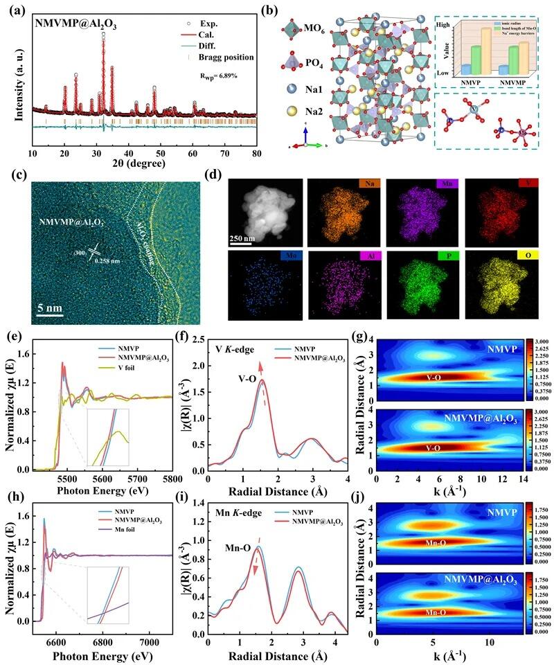 图 1. NMVMP@Al2O3材料的综合结构表征结果。