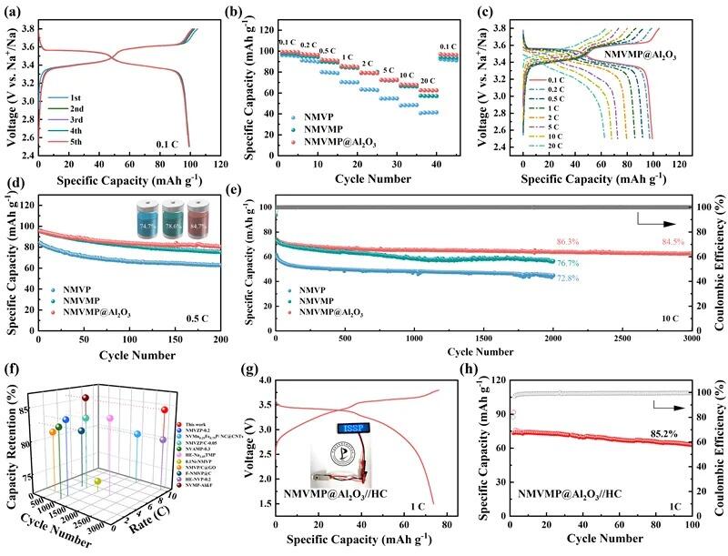 图 2. NMVMP@Al2O3材料的电化学性能分析。