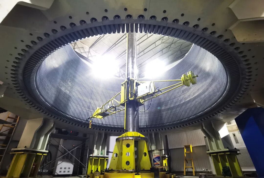 定子铁心作为发电机组的“磁力中枢”,其叠装质量直接关乎机组运行效率与稳定性。项目团队坚持以“毫米级精度”为标准,累计使用10万余张厚度0.5毫米的硅钢片,通过精密叠压、整形与压紧等工艺,最终形成内径5.35米、高2.85米的定子铁心,圆柱度误差控制在0.2毫米以内,整圆波浪度不超过2毫米,精度显著优于厂家设计标准。