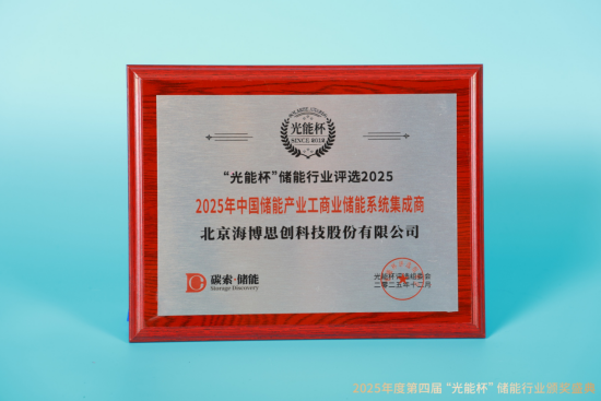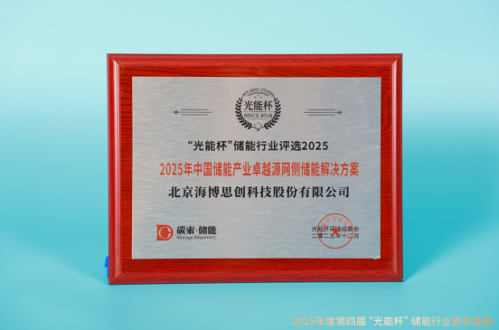 本届“光能杯”共有100余家储能企业参与报名评选,角逐年度荣誉。此次颁奖盛典中,海博思创凭借强大创新力、出色的品质与服务、卓越的品牌影响力,荣膺2025年中国储能产业工商业储能系统集成商、2025年中国储能产业卓越源网侧储能解决方案、2025年中国储能产业最具影响力企业。