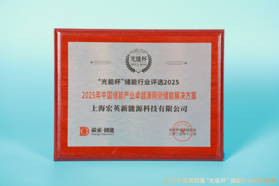 本届“光能杯”共有100余家储能企业参与报名评选,角逐年度荣誉。此次颁奖盛典中,宏英新能源凭借强大创新力、出色的品质与服务、卓越的品牌影响力,荣膺2025年中国储能产业卓越源网侧储能解决方案、2025年中国储能产业优秀品牌企业。