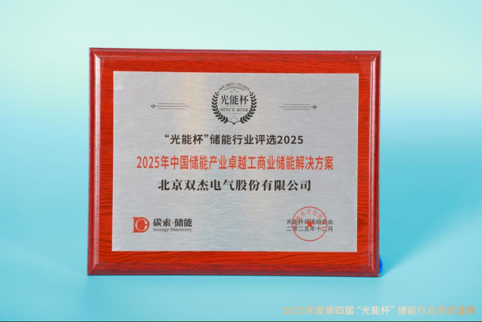 本届“光能杯”共有100余家储能企业参与报名评选,角逐年度荣誉。此次颁奖盛典中,双杰电气凭借强大创新力、出色的品质与服务、卓越的品牌影响力,荣膺2025年中国储能产业卓越工商业储能解决方案。作为光,储,氢领域持续时间最长的评选活动之一,“光能杯”储能行业评选凭借专业的评审体系,权威的行业认可度,已成为衡量企业实力的"金标准"与洞察产业趋势的重要窗口。