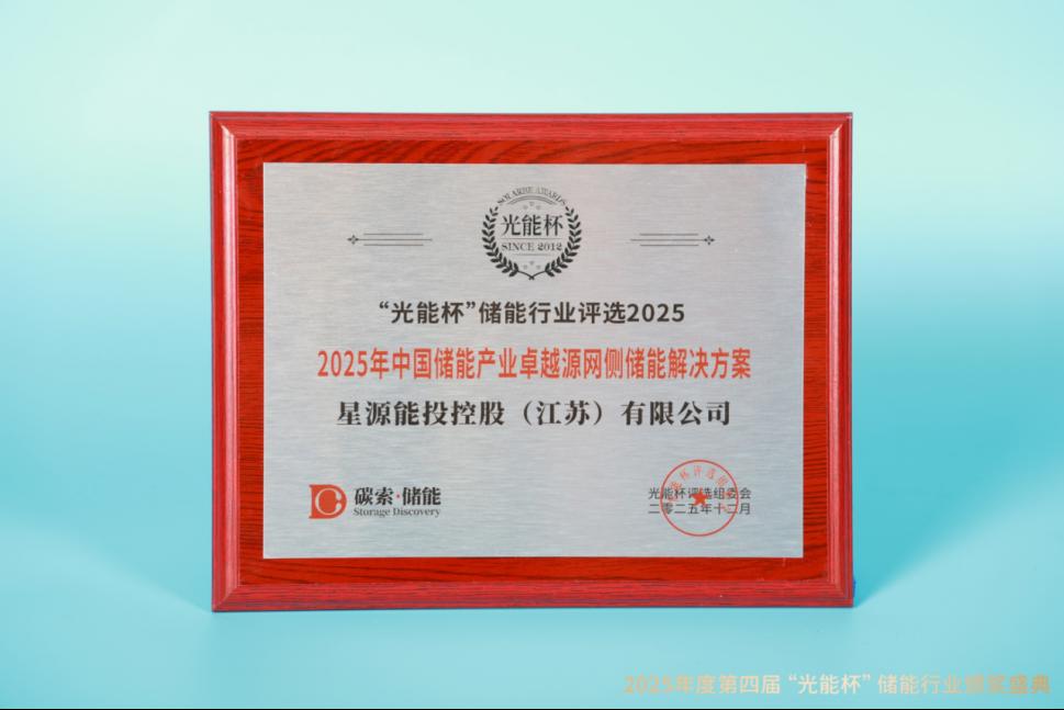 本届“光能杯”共有100余家储能企业参与报名评选,角逐年度荣誉。此次颁奖盛典中,星源能投凭借强大创新力、出色的品质与服务、卓越的品牌影响力,荣膺2025年中国储能产业卓越源网侧储能解决方案、2025年中国储能产业最具影响力企业。作为光,储,氢领域持续时间最长的评选活动之一,“光能杯”储能行业评选凭借专业的评审体系,权威的行业认可度,已成为衡量企业实力的"金标准"与洞察产业趋势的重要窗口。