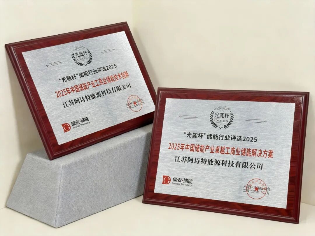 新年伊始,捷报频传。由碳索储能网主办的2025年度“光能杯”储能行业颁奖盛典于苏州盛大举行,阿诗特能源凭借卓越的技术创新能力、优质的产品性能及成熟的解决方案,一举斩获两项行业权威大奖,以强劲势头开启2026年发展新篇,充分彰显了其在工商业储能领域的核心竞争力与行业影响力。