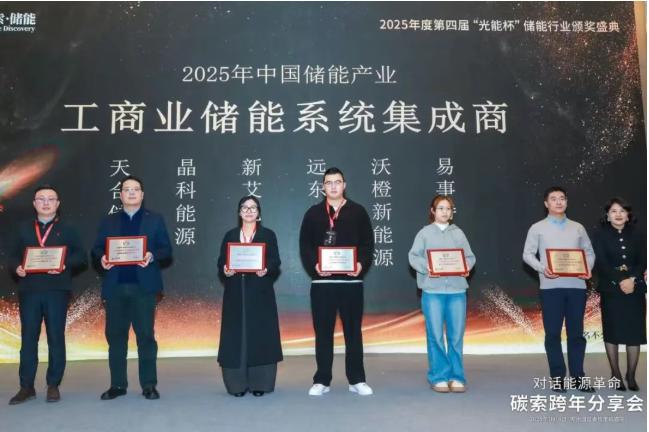 1月14日,“光能杯”跨年分享会暨2025年储能行业评选颁奖典礼圆满落幕。易事特凭借其在储能领域的卓越表现和技术创新,一举斩获 “2025年中国储能产业优秀品牌企业”与 “2025年中国储能产业工商业储能系统集成商”两大殊荣。
