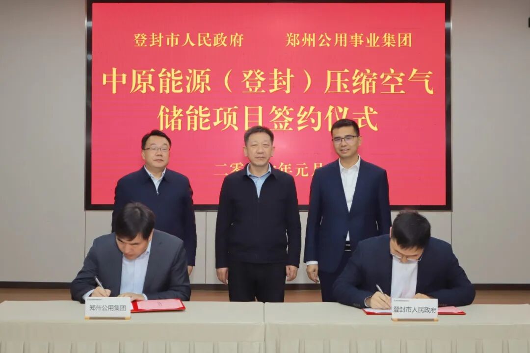 1月27日,郑州公用集团与登封市政府签订中原能源(登封)压缩空气储能项目投资合作框架协议。郑州市政协副主席、市发展改革委党组书记、主任夏扬,市发展改革委副主任王俊毅,登封市长张增伟,郑州公用集团党委书记、董事长赵少伟,党委副书记、总经理杨勇等出席签约仪式。