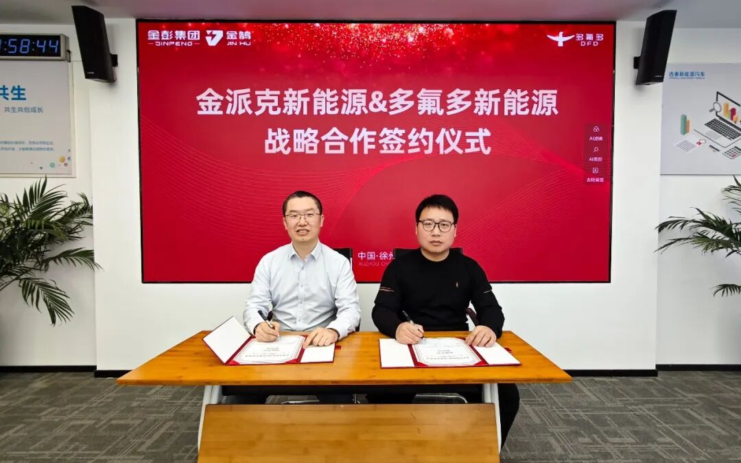 近日,江苏金派克新能源有限公司(以下简称“金派克”)与多氟多新能源科技有限公司(以下简称“多氟多新能源”)战略合作签约仪式在江苏金派克公司总部隆重举行。双方基于对锂电池行业未来发展的共同愿景,正式缔结深度战略合作伙伴关系,携手开启共赢新篇章。
