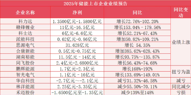 【企业】13家储能企业2025年业绩预告;政企合作多点推进:宁德时代签约云南、楚能签约内蒙古巴彦淖尔、海博思创签约山西大同