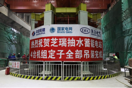 内蒙古芝瑞抽水蓄能电站全部机组定子吊装完成。该节点的完成,为电站实现投产发电目标奠定了坚实基础。