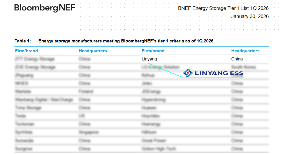近日,彭博新能源财经(BNEF)公布2026年第一季度全球储能系统制造商评级,林洋储能再度成功入围Tier 1榜单。此次蝉联不仅延续了林洋储能的上榜纪录,更向全球市场表明:林洋储能已凭借体系化综合实力,在国际权威评价体系中建立起稳固的领先地位,公司发展路径获得了技术、市场与金融领域的多重认可。