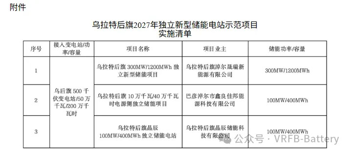 其中,乌拉特后旗晶辰100MW/400MWh独立储能电站业主为乌拉特后旗晶辰储能科技有限公司。乌拉特后旗晶辰储能科技有限公司系内蒙古晶钒辰星新能源科技有限公司与浙江星辰新能科技有限公司合资公司。