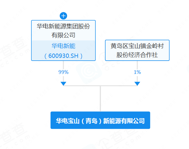企查查穿透图显示,该企业由华电新能源集团股份有限公司和黄岛区宝山镇金岭村股份经济合作社共同持股。