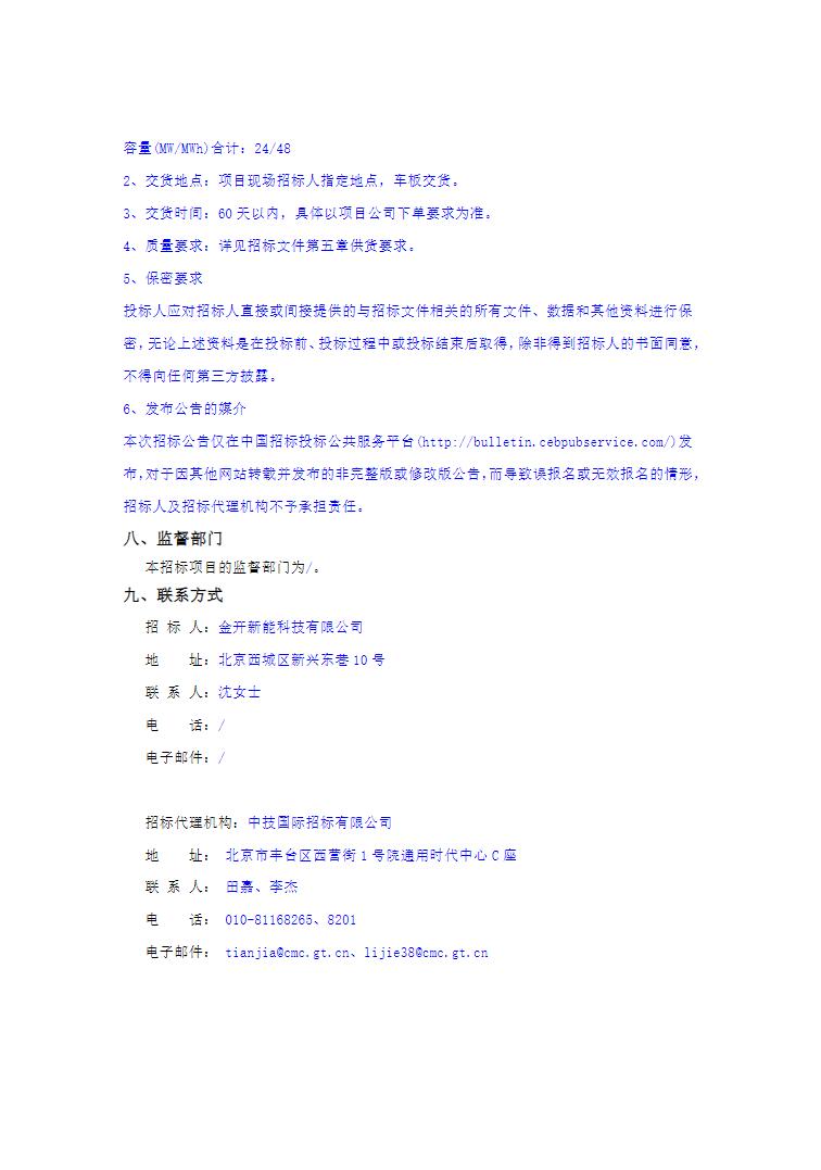 2月5日,宁夏区域存量光伏配建电源侧储能项目储能系统设备采购公开招标公告发布。宁夏区域存量光伏配建电源侧储能项目,共包含6个子项目:分别为宁夏盐池国信10MW/20MWh电源侧储能项目、宁夏同心隆基一期3MW/6MWh电源侧储能项目、宁夏同心隆基二期4MW/8MWh电源侧储能项目、宁夏中宁利能3MW/6MWh电源侧储能项目、宁夏中宁隆基2MW/4MWh电源侧储能项目、宁夏吴忠太阳山2MW/4MWh电源侧储能项目。投标人近三年,具有储能系统设备供货业绩。