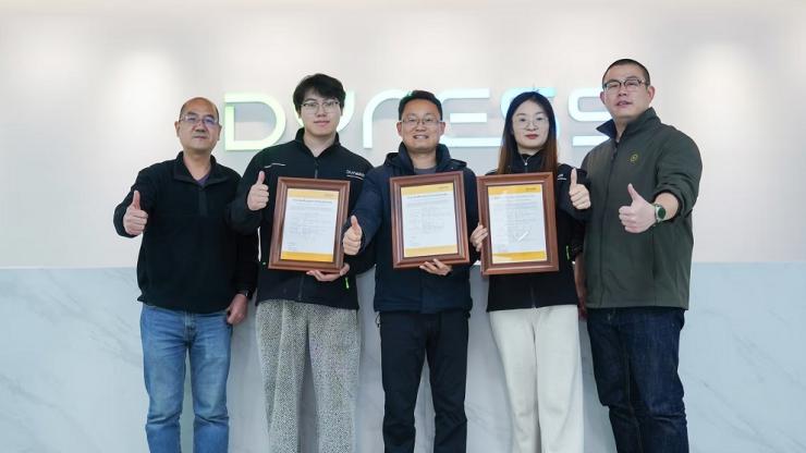 颁证仪式在大秦数能全球总部苏州办公室举行,大秦数能副总经理及电池系统产品线总监张微中先生和 Intertek电子电气华东北区销售总监李一峰先生出席仪式并完成证书交接,共同见证这一重要里程碑。