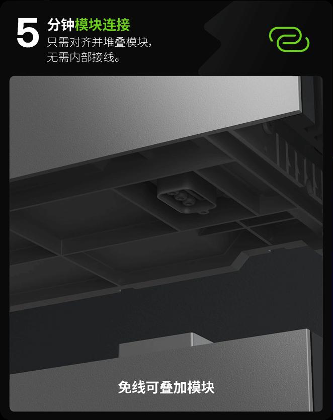 HiOne采用可堆叠的模块化设计,每一个模块都是独立的功能单元。用户只需完成对齐与堆叠,无需进行任何复杂的内部接线操作。通过将专业级安装流程“模块化、标准化”,产品显著降低了安装门槛,即使没有电工背景的用户,也能轻松完成部署。