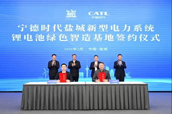 2月13日,宁德时代盐城新型电力系统锂电池绿色智造基地签约活动在盐城举行。