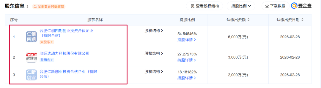根据股权穿透显示,该公司由合肥仁创四期创业投资合伙企业(有限合伙)、欣旺达动力科技股份有限公司等共同持股。其中,合肥产投和合肥建投两家国资平台合计持股超过54%,显示出地方政府对储能产业的高度重视和强力支持。