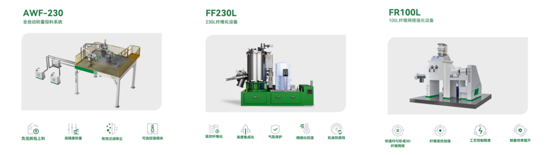 高能数造产线阶段解决方案致力于打通从工艺验证到规模量产的全链条,为企业提供无缝衔接的产能支撑。针对研发向量产转化过程中常见的参数不稳定、纤维化效果不佳等核心痛点,通过专用设备与定制化工艺,助力客户高效完成产能爬升与工艺定型,并快速抢占市场主导地位。