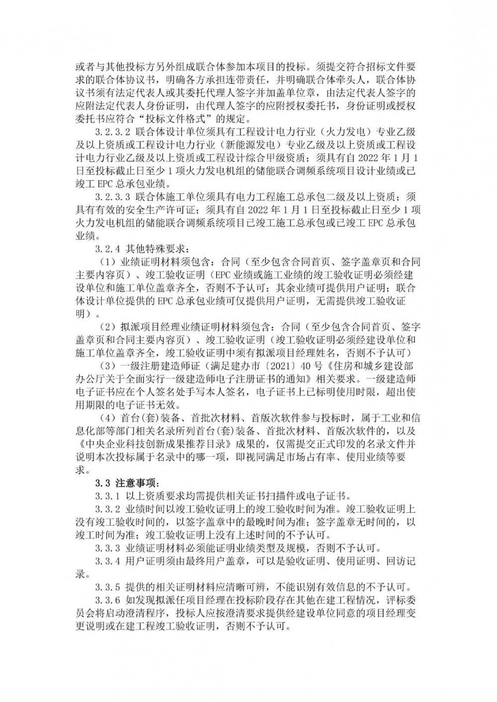 投标人自2022年1月1日至投标截止日须至少具备1项火力发电机组的储能联合调频系统的已竣工EPC总承包业绩。