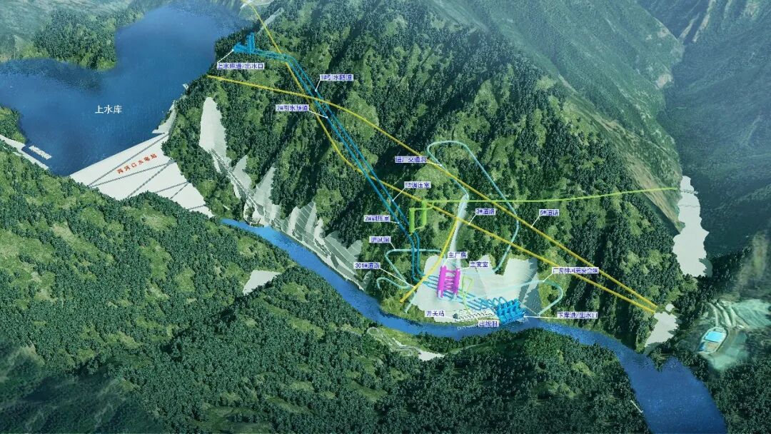 雅砻江两河口混合式抽水蓄能电站位于四川省甘孜州雅江县,建设4台300兆瓦可逆式抽水蓄能机组,总装机容量1200兆瓦,是全球最大、海拔最高的混合式抽水蓄能项目,也是我国第一个核准的大型混蓄项目。电站投产后,将具备抽水、发电“双向调节”作用,服务当地电网调峰、填谷、储能、调频、紧急事故备用,提高甘孜中部电网的光伏、风电并网能力,提升当地重要清洁能源基地多能互补能力,助力四川省打造世界级优质清洁能源基地。