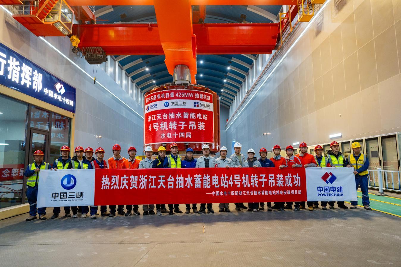 近日,浙江天台抽水蓄能电站4号机组转子于2月28日顺利完成吊装就位。这是天台电站最后一台转子,本次吊装工作的圆满完成标志着电站已进入2026年全面投产发电最后冲刺阶段,为三峡建工在国家“十五五”规划开局之年开好局起好步奠定良好基础。