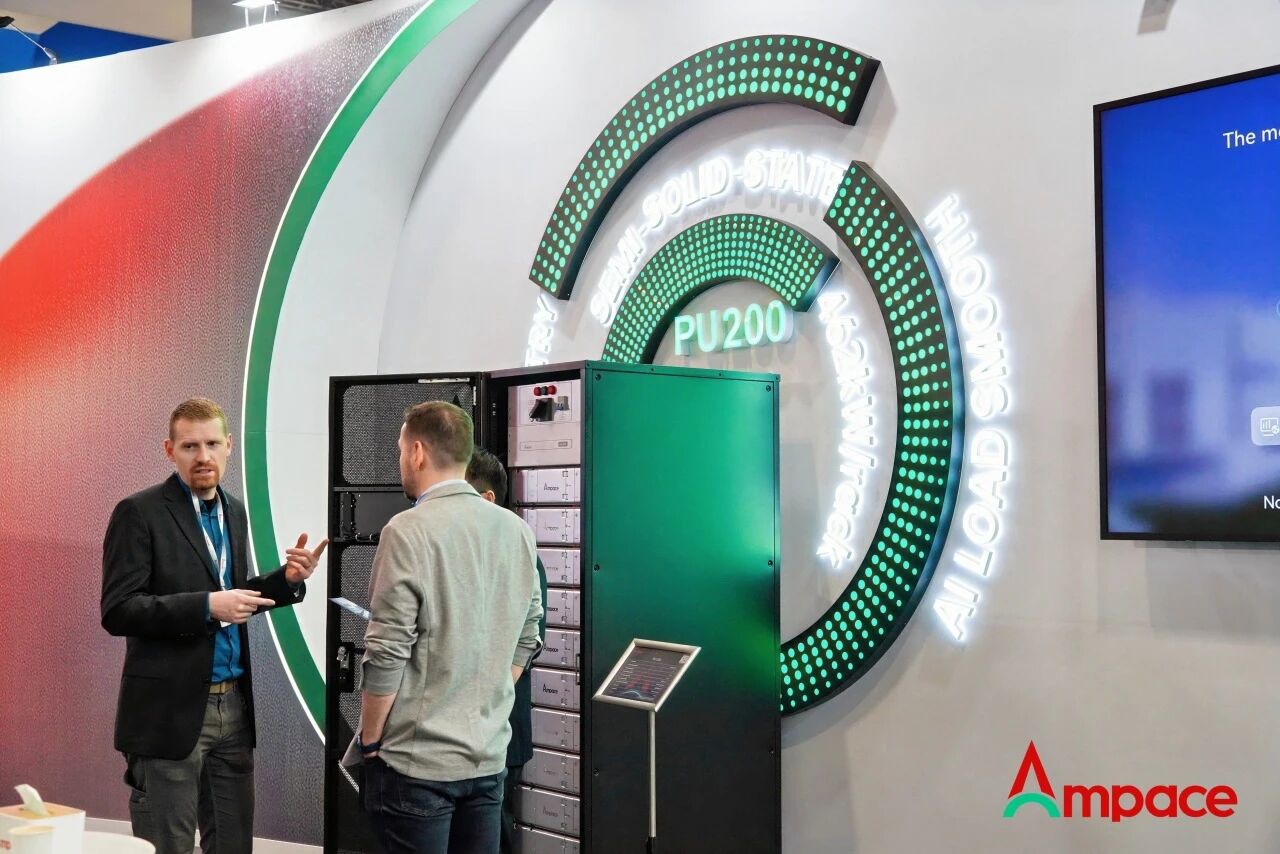 更大的挑战还来自GPU集群,其工作负载呈现出快速且不可预测的“脉冲式”波动,电力系统需要在瞬间吸收功率尖峰的同时,始终保持稳定的电力输出。新能安展出的PU系列产品,正是为此而生。凭借其快速的高倍率放电性能和连续稳定的系统级输出,它能确保在动态的AI负载下,电力供应依然连续不断。