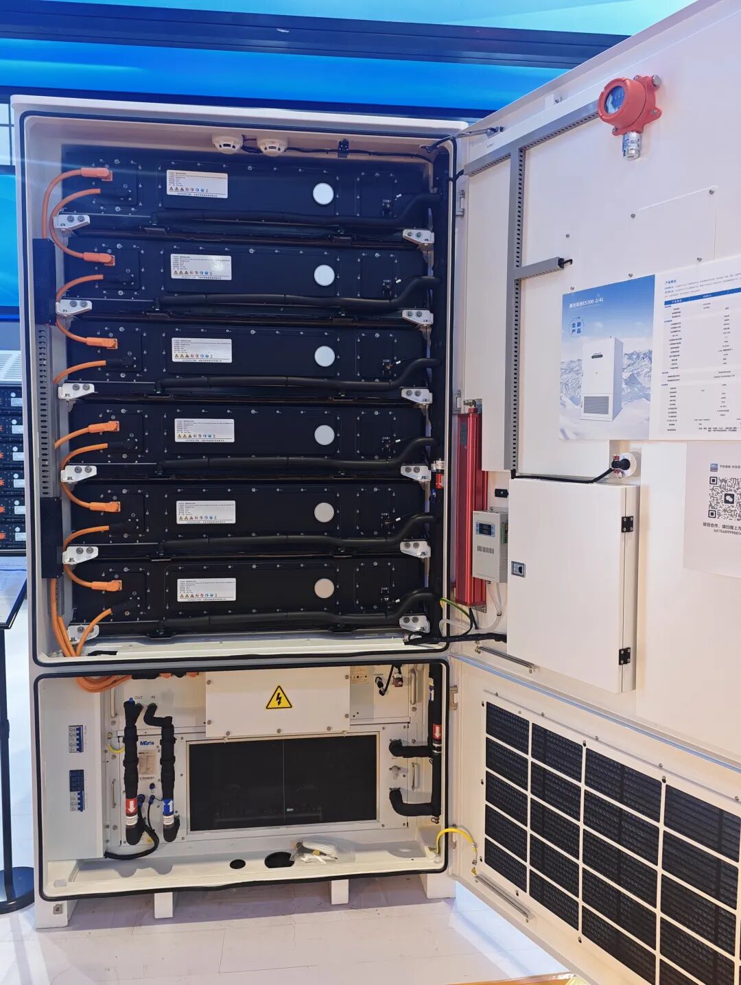 在华致能源展台现场,首次线下公开亮相的ES300-4L液冷系统(300kW/1172kWh)吸引了众多专业观众驻足咨询。这款基于587Ah大电芯应用、单机突破1MWh的创新产品,能量密度高达342kWh/㎡,相比市场主流的125kW/4h产品节省占地35%-50%,综合建设成本下降5分/Wh,大幅提升项目经济性。