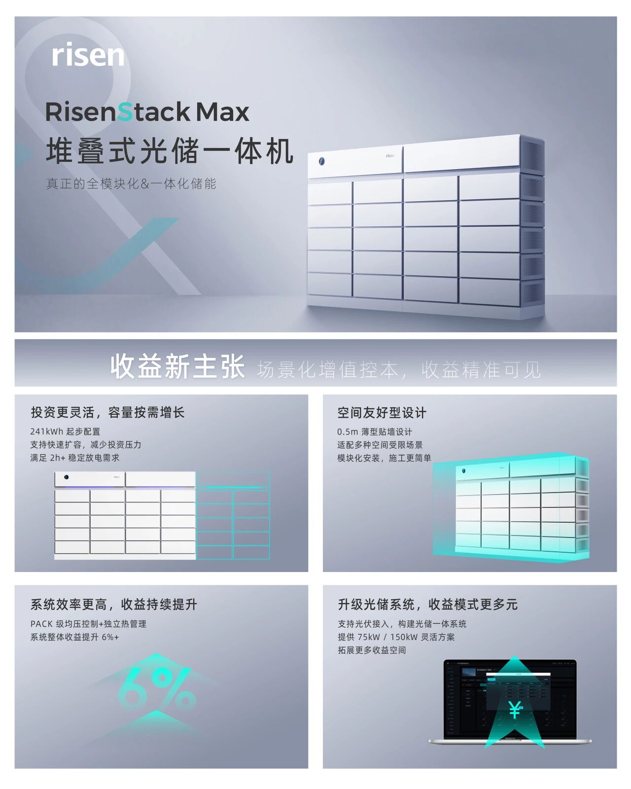 随着峰谷价差扩大与企业用能结构变化,工商业储能正从“设备配置”走向“收益管理”。在空间条件、系统效率与能源结构多重约束下,如何实现更稳健的收益成为关注重点。RisenStack Max 围绕真实应用场景进行系统化设计。
