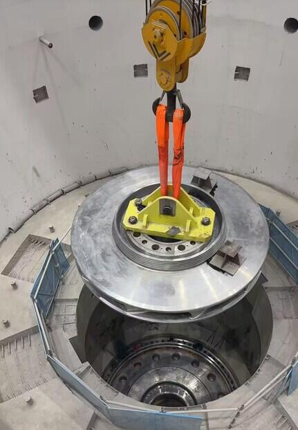 转轮是水轮发电机组的重要部件,扮演着将水能转换为机械能的“桥梁”角色。本次吊装的转轮最大外直径为3930毫米,总高度为1395毫米,重达32吨。