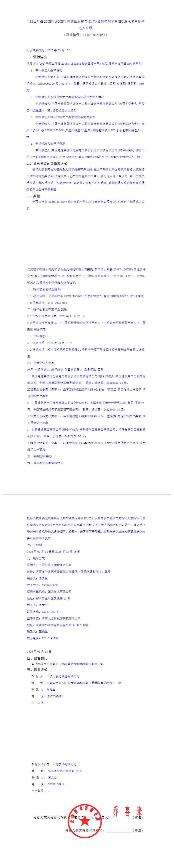 3月14日,河南平顶山叶县200MW/1600MWh先进压缩空气(盐穴)储能电站项目EPC总承包中标候选人公示。