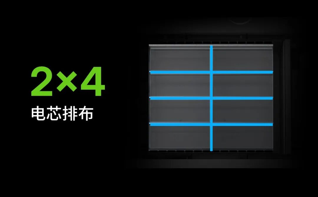 在电池结构层面,HiOne基于大量计算流体动力学(CFD)热仿真与热失控蔓延测试,采用能量密度稍低,但更优化的2x4电芯阵列。这一设计摒弃了传统密集的3×3布局,有效避免“中心电芯”形成的热岛效应。仿真数据显示,该结构能够将电池包内部最大温差严格控制在6°C以内,将电池包内的最大温差严格控制在<6°C,从结构上降低了热失控发生的概率。