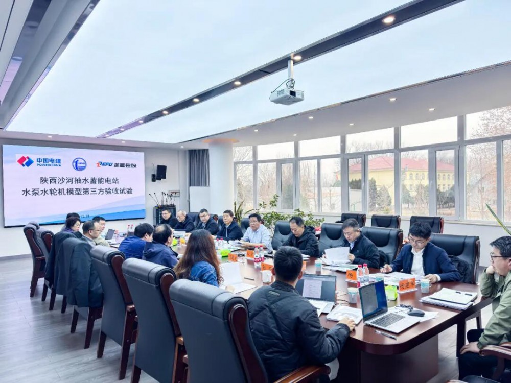3 月 6 日至 15 日,陕西沙河抽水蓄能电站水泵水轮机模型第三方验收试验,在中国水利水电科学研究院大兴试验基地水力机械实验室 TP1 试验台顺利完成。试验全程由多方验收组见证监督,标志着该电站主机设备水力性能验证取得关键突破,为原型机组设计、制造筑牢技术根基。
