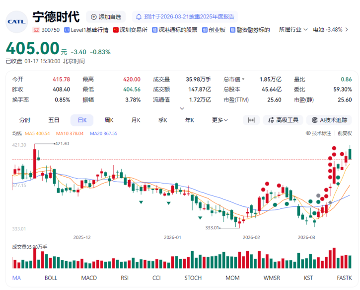 图:宁德时代市值超1.85万亿元。