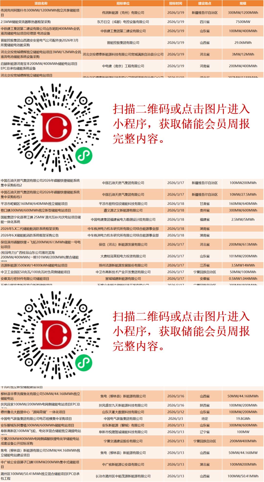 3月13日,新疆维吾尔自治区及兵团与18家中央企业签署《自治区人民政府和兵团与中央企业项目合作意向书》,涉及能源等领域,预计投资1700亿元,其中包含储能相关布局,同时中国石油首个绿电直连项目获批,配套建设20MW/80MWh储能电站,保障供电稳定。