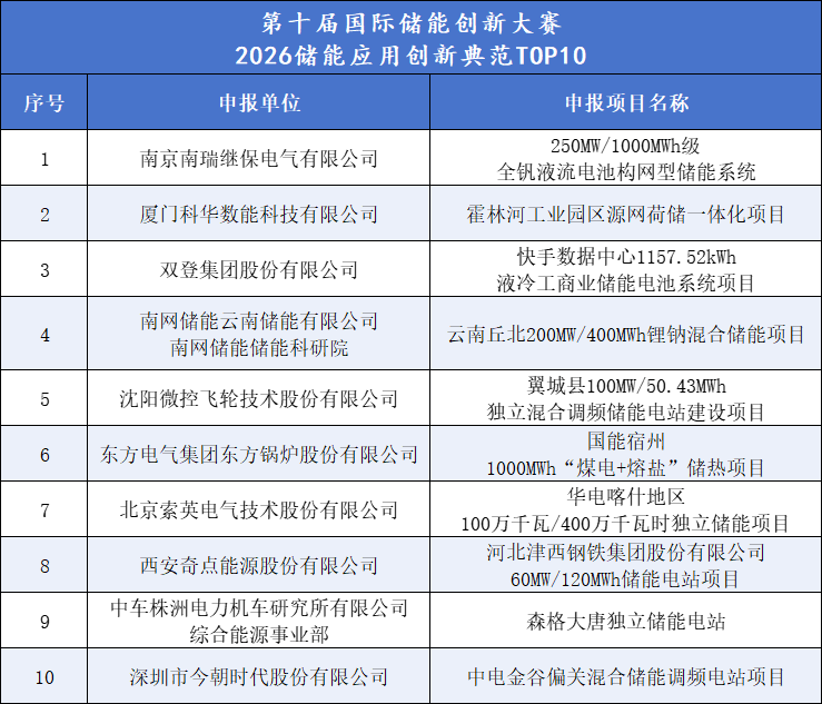 2026储能应用创新典范TOP10
