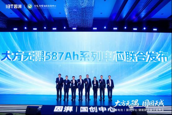 在全场瞩目下,因湃正式发布全新 “大方无隅” 系列 587Ah 储能电芯,包含浩瀚版(液态)电芯与乾坤版固液混合(半固态)电芯两款核心产品,以技术突破填补行业高端安全储能产品空白。