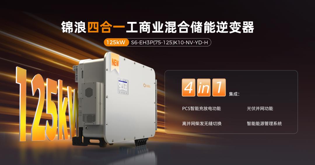 锦浪125kW四合一工商业储能逆变器将MPPT、PCS、并/离网与发电机切换(STS)及 EMS 能源管理全部做进同一控制系统,出厂完成标准化集成与联调,到站上电即用;采用 IP66 户外防护,在风沙与暴雨等严苛环境下持续运行。