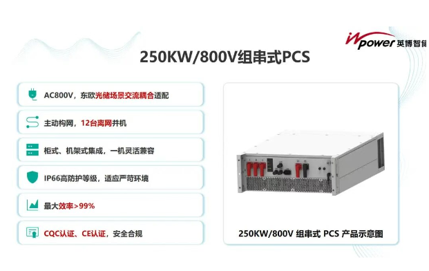 该产品采用800V交流输出,完美适配东欧等海外光储场景的交流耦合应用,无需变压器即可与光伏逆变器直连,有效降低系统成本与故障点。具备主动构网能力,支持多达12台离网并机,弱网、柴发、离网适应性极强。整机防护等级达IP66,无惧风沙、潮湿等严苛环境挑战,最高转换效率超过99%。支持柜式与机架式两种集成方式,一机灵活兼容不同项目布局。