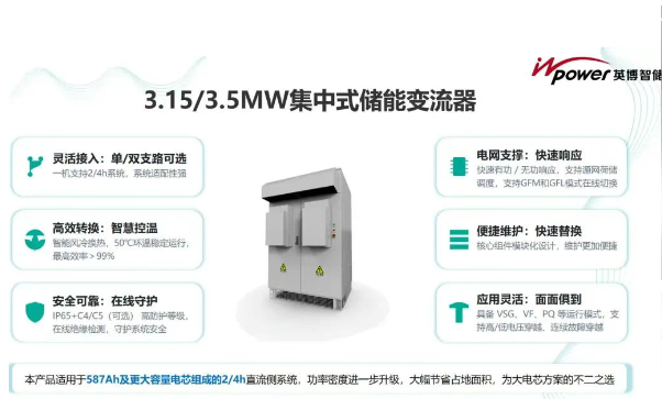 英博智储始终坚持以技术创新为驱动,持续加大在PCS领域的研发投入。本次展会,英博智储不仅展示了成熟的产品体系,更重磅发布了三款完全自主研发的全新储能变流器(PCS)产品,精准匹配电网侧、工商业、微电网等多维应用场景。值得一提的是,本次参展产品阵容中,出海产品占据绝对主力,尽显英博智储逐鹿全球市场的硬核实力与坚定决心。从250kW到3.15MW,不仅是数字的跨越,更是英博智储对行业趋势的深刻洞察——更大功率、更强适配、更高效率、更优成本。