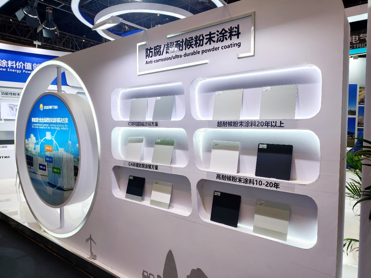 针对新能源装备户外长期运行的防腐需求,盛达推出符合 C3、C4、C5 等级的防腐 / 超耐候粉末涂料,包含底粉及面粉一体化解决方案,有效抵御盐雾、酸雨、紫外线等侵蚀,延长设备使用寿命,适配海上、高湿、风沙等恶劣环境。