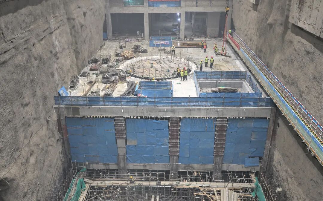 首台机组发电机层顺利完成浇筑是继主厂房廊道层、蜗壳层、水轮机层及中间层相继浇筑完成后取得的又一重要进展,每一层混凝土浇筑施工都具有结构复杂、预埋件多、温控要求高等技术难点。面对施工空间狭窄、交叉作业频繁、多专业协同难度大等挑战,惠州中洞业主项目部充分发挥“惠州中洞项目厂房浇筑机电安装党员突击队”的先锋模范作用,科学统筹、精细管理,组织土建与机电专业紧密配合,优化施工工序衔接,严格把控浇筑全过程质量与安全。项目部提前协调拌合系统及备用站,保障混凝土连续供应;施工过程中严格执行温控防裂措施,确保大体积混凝土浇筑质量。在各方高效协同下,浇筑后的发电机层混凝土表面平整、内部密实,各项指标均达到设计要求,优质高效完成了浇筑任务。