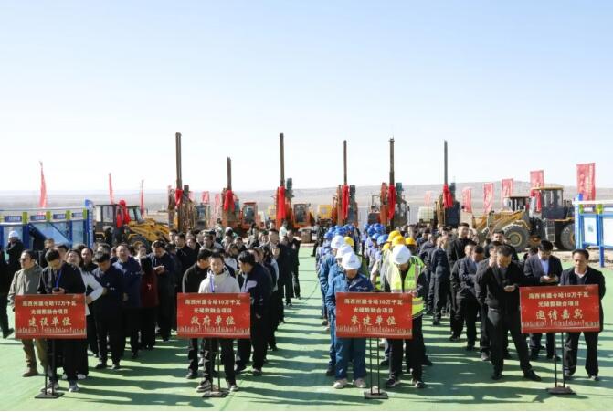 海西国投党委书记、董事长杨键宣布项目开工。海西州发改委副主任、州能源局局长昂智,内蒙古东杨工程咨询公司董事长张媚,陕建铁建公司党委书记、董事长张华在开工仪式上致辞。海西州自然资源局、德令哈市发展和改革委员会、海西州国有资本投资运营(集团)有限公司、内蒙古东杨工程咨询有限公司等单位有关领导共同见证项目开工。